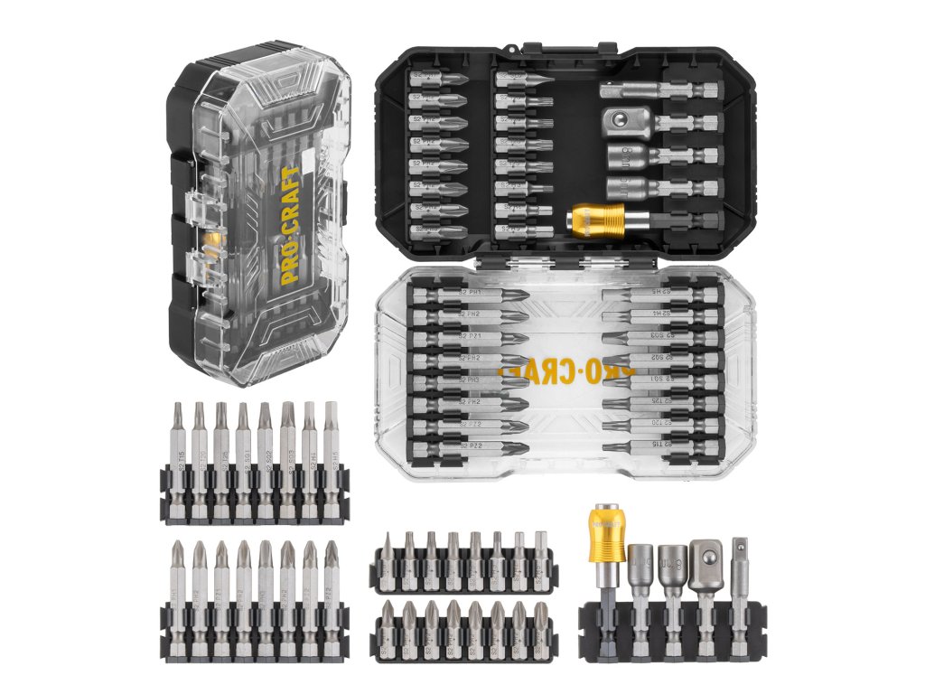37dílná sada bitů Procraft BS-37 16 ks 25mm bitů: Phillips: PH1, PH2x6, PH, Ploche: SL6, Torx: T20x2, T25x2, Imbus: 3mm, 4mm, 5mm 16 ks 50mm bitů: Phillips: PH1, PH2x3, PH3, Pozi: PZ1, PZ2x2, Torx: T15, T20, T25, Square: SQ1, SQ2, SQ3, Imbus: H4, H5
