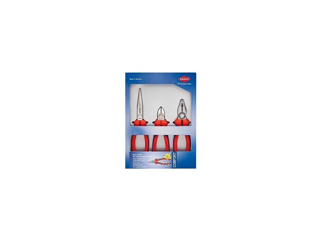 Sada kleští od kvalitního výrobce Knipex, obsahuje 3 kusy kleští - kombinované, boční štípací a půlkulaté kleště s břity.