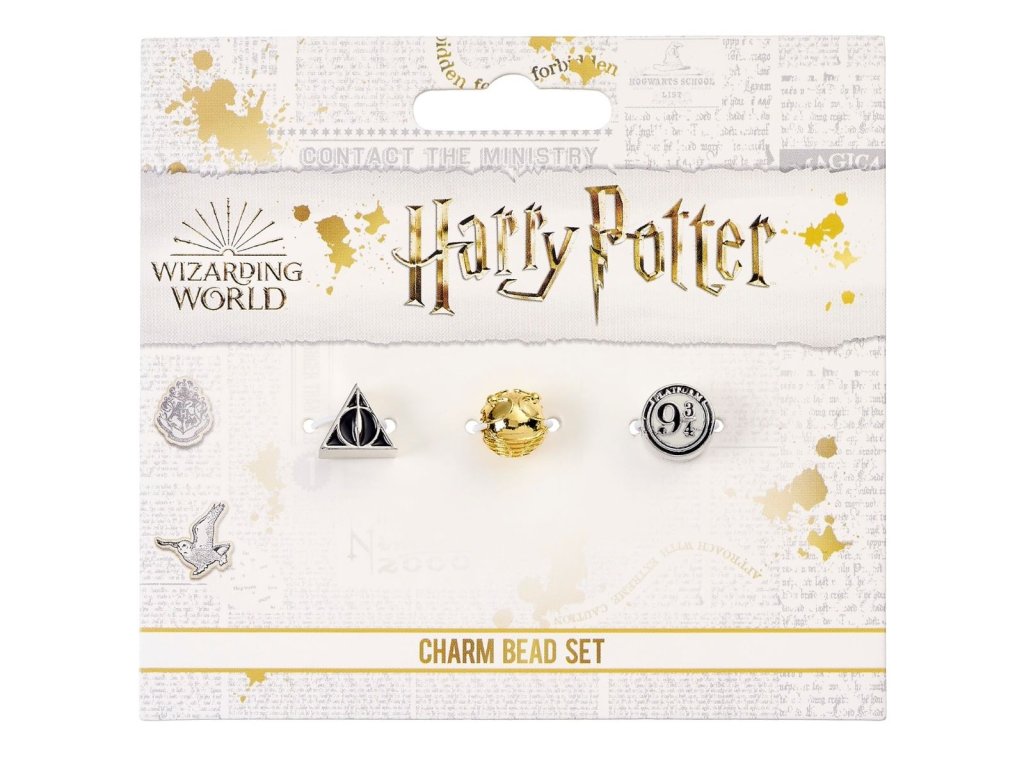 Sada korálků v podobě symbolu Relikvií smrti, Zlatonky a znaku Nástupiště 9 a 3/4 udělá radost fanouškům Harry Pottera a bude skvělým doplňkem sbírky pro jejich náramek nebo náhrdelník!