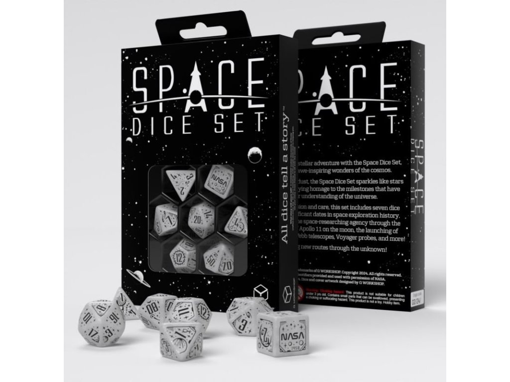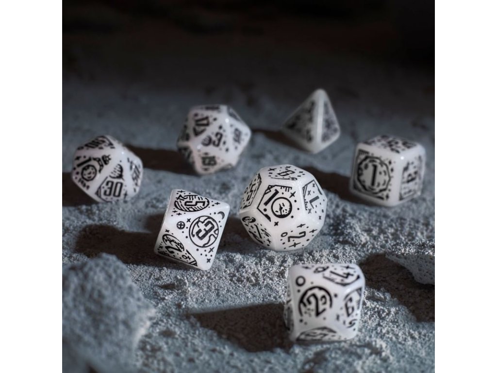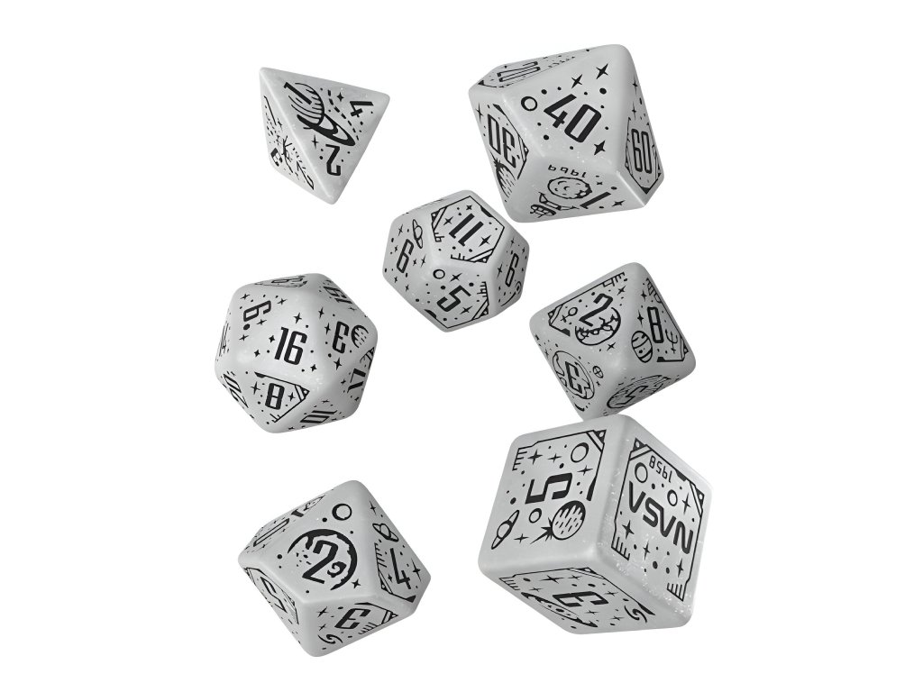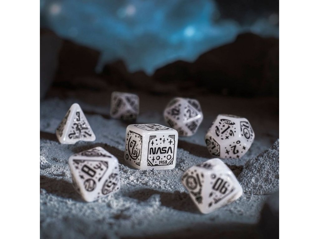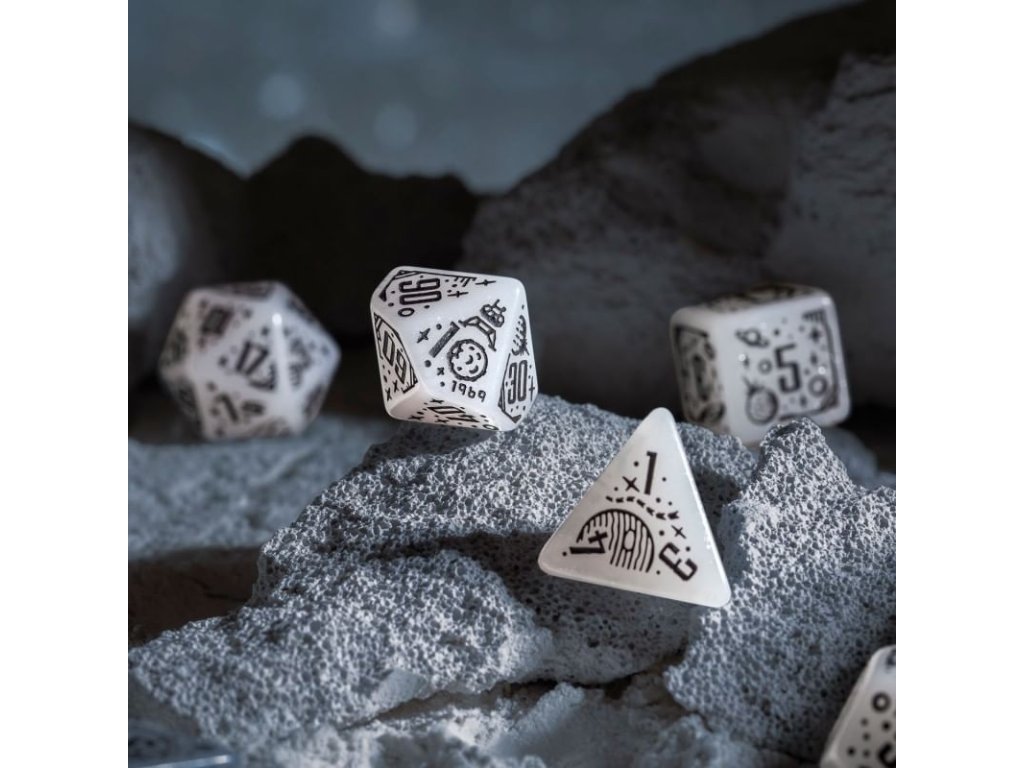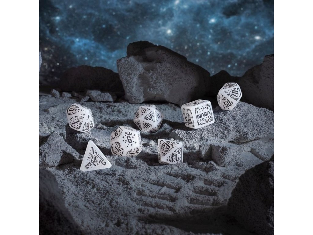 Se sadou 7 vícestěnných kostek Apollo si připomeneš ty největší úspěchy v historii lidstva! Sada kostek obsahuje originální mnohostěnky s motivy souvisejícími s průzkumem vesmíru. Kostky jsou průhledně bílé, se třpytivým prachem a černými rytinami. Skvělý dárek pro každého hráče Dungeons and Dragons a dalších RPG, který miluje sci-fi nebo milovníka vědy a astronomie. Kostky tě vezmou na úžasnou cestu skrze klíčové okamžiky v historii výzkumu vesmíru. 29. července 1958 byla založena NASA, což znamenalo začátek nové éry ve vesmírném výzkumu. Poté, 20. července 1969, přistáli Neil Armstrong a Buzz Aldrin na Měsíci a stali se prvními lidmi na jiném nebeském tělese. 24. dubna 1990 byl vypuštěn Hubbleův teleskop, který otevřel nové perspektivy, a 25. prosince 2021 začal svou misi teleskop Jamese Webba. Programy Voyager 1 a 2 pokračují ve své cestě do neznáma a překračují hranice naší Sluneční soustavy. Tato sada kostek vzdává hold těmto úspěchům a symbolizuje krásu a tajemství vesmíru. A možná ti teď pomůže vyprávět příběhy o galaxii daleko, daleko odtud… Balení obsahuje: čtyř, šesti, osmi, desíti, dvanácti, dvaceti stěnnou a procentovou kostku. K6 má hranu 1,6 cm.