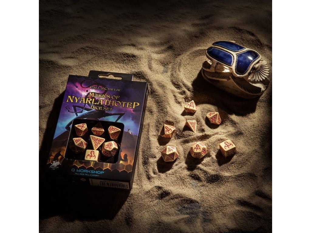 Call of Cthulhu (Volání Cthulhu) je hororové rpg, které užívá míst, nestvůr a dalších prvků povídek H. P. Lowecrafta a z děl autorů, kteří se jej později snažili napodobit. Tato sada kostek je inspirována dobrodružstvím Masks of Nyarlathotep pro rpg hru Call of Cthulhu. K mání je v béžovo-červené barevné kombinaci. Sada obsahuje sedm kostek: čtyř, šesti, osmi, desíti, dvanácti, dvaceti stěnnou a procentovou kostku.
