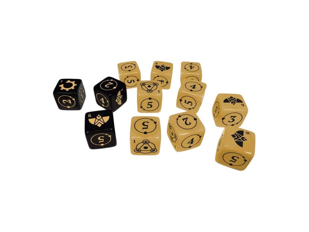 V sadě kostek pro RPG hru Coriolis: The Great Dark najdeš 9 béžových základních kostek a 3 černé kostky vybavení. Jedinečné kostky pro švédské RPG inspirované dobrodružnými objevitelskými výpravami z 19. století.