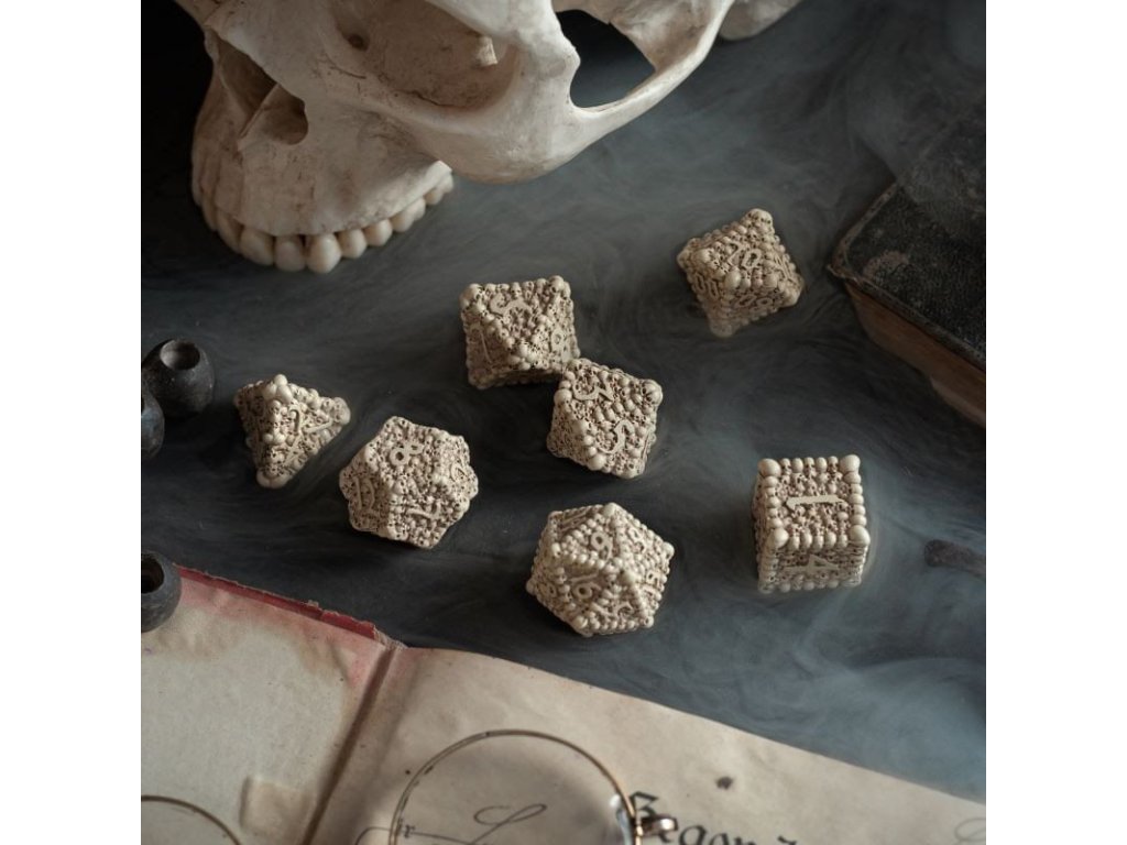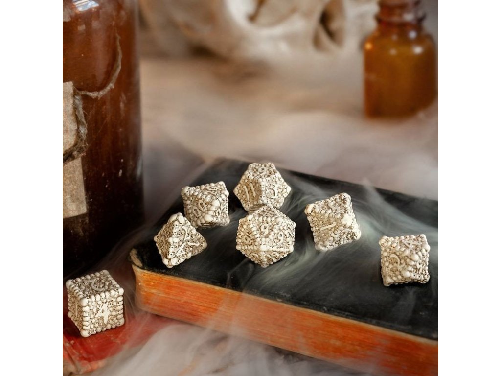 Sada Dice Macabre obsahuje 7 mnohostěnných kostek, které tvoří desítky malých lebek! Strašidelné a chladné kostky se hodí pro hororovou atmosféru her na hrdiny a skvěle doplní zážitek z hraní. Balení obsahuje 1x čtyř, 1x šesti, 1x osmi, 1x desíti, 1x dvanácti, 1x dvaceti stěnnou a 1x procentovou kostku.