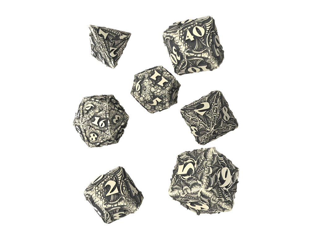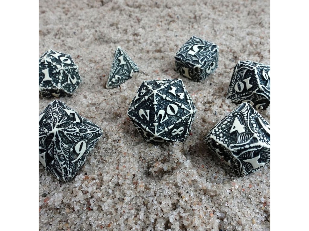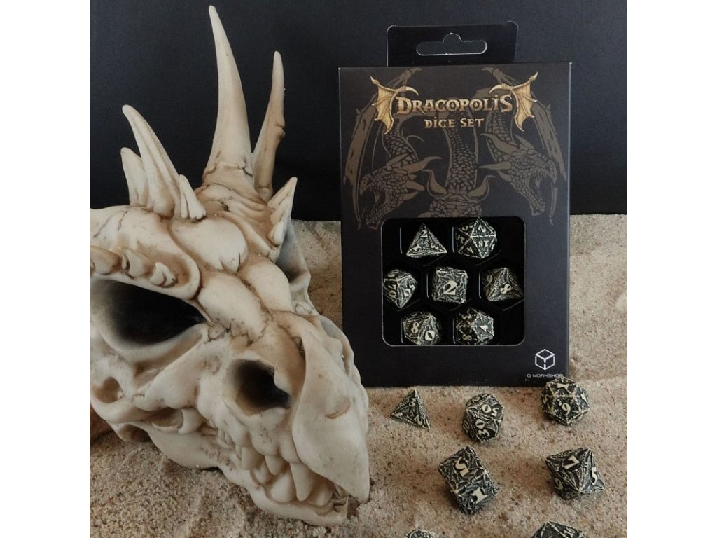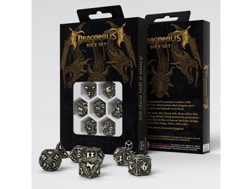 Probuď dračí moc se sadou kostek Dracopolis - Hebridský černý drak! Tato sada, inspirovaná prastarými draky, kteří kdysi vládli nebesům, přináší legendy zpět do tvé hry. Každá z těchto ručně malovaných kostek je vyrobena z prémiové pryskyřice a zdobena krásnými detailními dračími prvky – křídly, drápy a šupinami. Syté barvy a propracovaný design zachycují majestát a divy dračího světa. Inspirované britským agresivním drakem, který chrlí kyselinu a jeho šípový bodec dokáže zabít na jednu ránu! Hebridský černý drak jehož tělo pokrývají drsné černé šupiny s jasně purpurovými oky, dosahuje skoro 10 metrů a podél hřbetu se mu táhne hřeben nízkých velice ostrých destiček. Připrav se vrhnout kostky s dračí mocí při objevování světa Dungeons and Dragons, Pathfinder RPG a dalších rolových her! Sada obsahuje k4, k6, k8, k10, k12, k20 a k%.