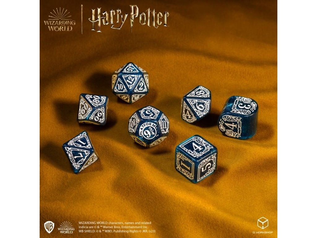Sada obsahuje 7 mnohostěnných kostek v grafice bradavické koleje Havraspár z příběhů o Harry Potterovi. Originální kostky pro hry na hrdiny - nejen z magického světa J. K. Rowlingové! V nabídce máme 2 různé barevné varianty kostek: modro-bílou a bílo-modrou. Balení obsahuje 1x čtyř, 1x šesti, 1x osmi, 1x desíti, 1x dvanácti, 1x dvaceti stěnnou a 1x procentovou kostku.