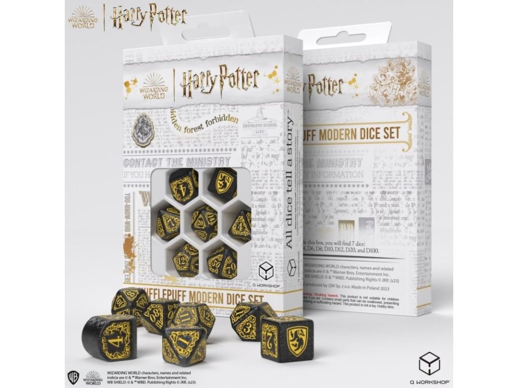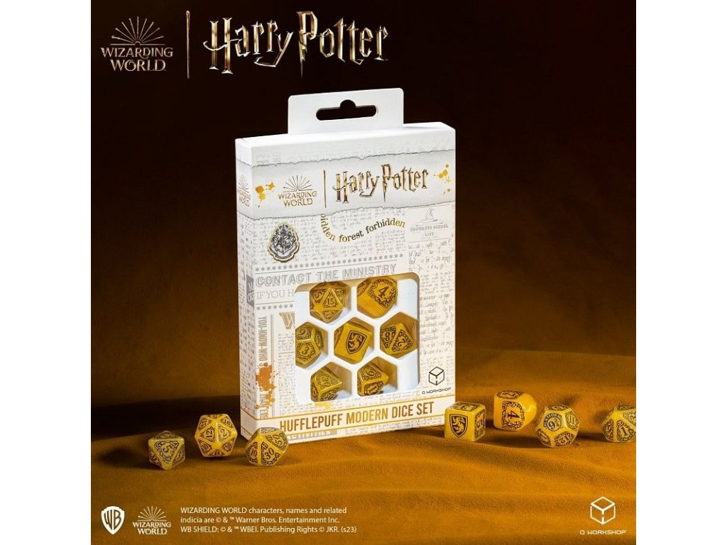 Sada obsahuje 7 mnohostěnných kostek v grafice bradavické koleje Mrzimor z Harry Pottera. Originální kostky pro hry na hrdiny - nejen z magického světa J. K. Rowlingové! V nabídce máme 2 různé barevné varianty kostek: žluto-černou a černo-žlutou. Balení obsahuje 1x čtyř, 1x šesti, 1x osmi, 1x desíti, 1x dvanácti, 1x dvaceti stěnnou a 1x procentovou kostku.
