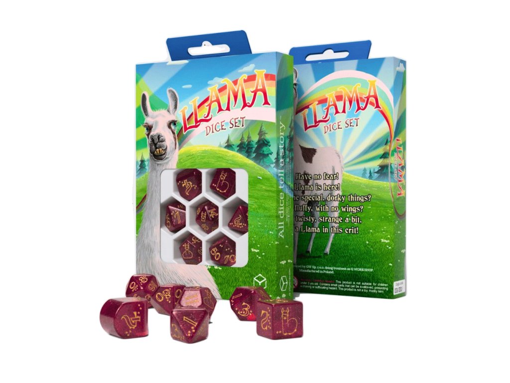 Balení obsahuje 7 mnohostěnných kostek, které využiješ nejlépe pro hry na hrdiny, jako jsou např. Dungeon and Dragons, Jeskyně a draci, Pathfinder, aj. Kostky jsou z plastu a mají fialovo-růžovou třpytivou barvu. Sada obsahuje tyto kostky: k4, k6, k8, k10, k12, k20 a k%.