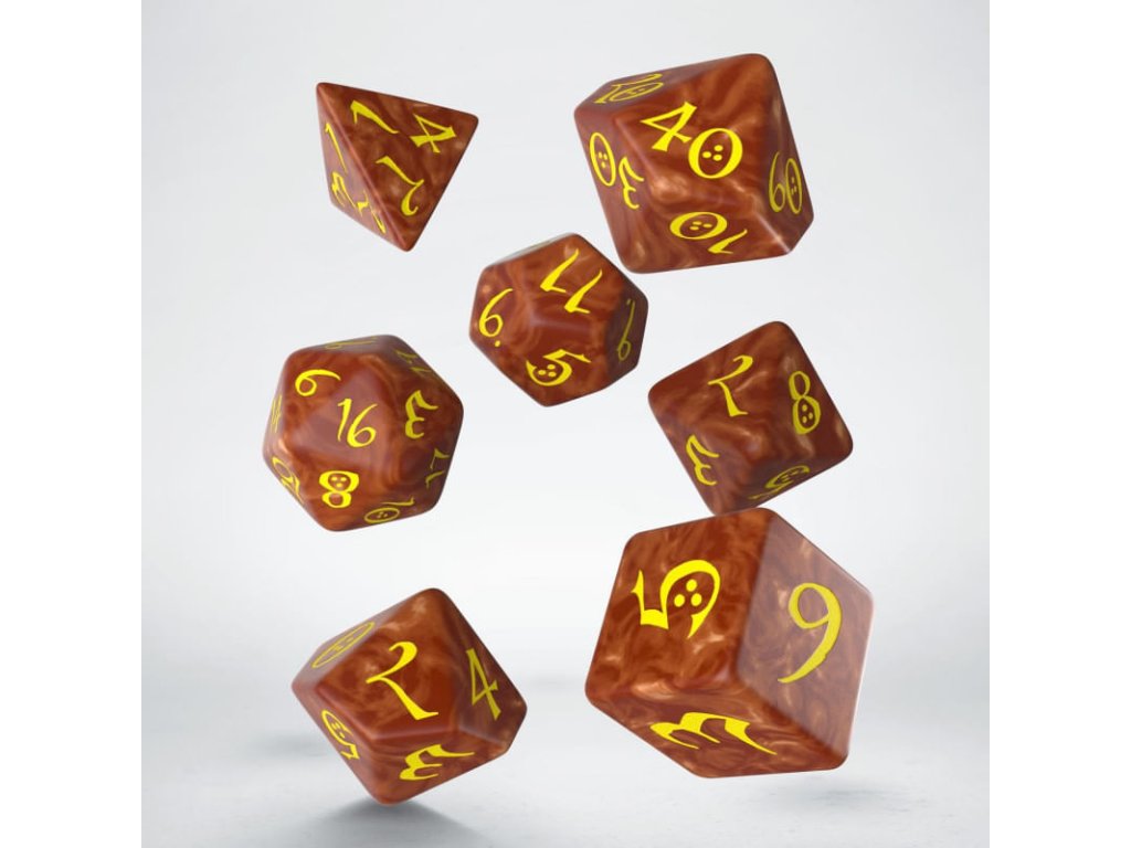 Sada stylových hracích kostek pro RPG s krásně vyvedenými gravírovanými číslicemi, ideální doplněk pro hráče her na hrdiny. Sada obsahuje sedm kostek: čtyř, šesti, osmi, desíti, dvanácti, dvaceti stěnnou a procentovou kostku, k mání je v různých barevných variantách.