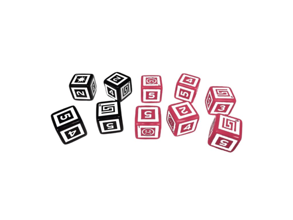 Tyto gravírované kostky jsou navrženy speciálně pro hru The Electric State Roleplaying Game. Sada obsahuje: Čtyři černé kostky Gear Šest červených základních kostek