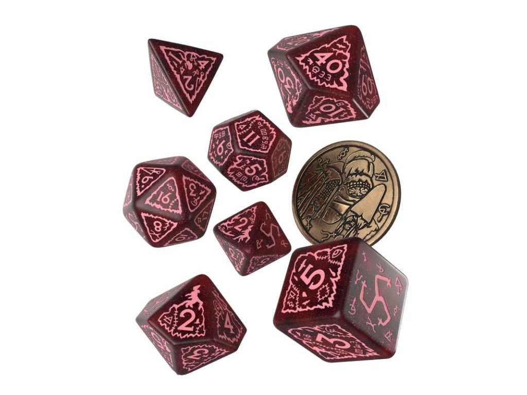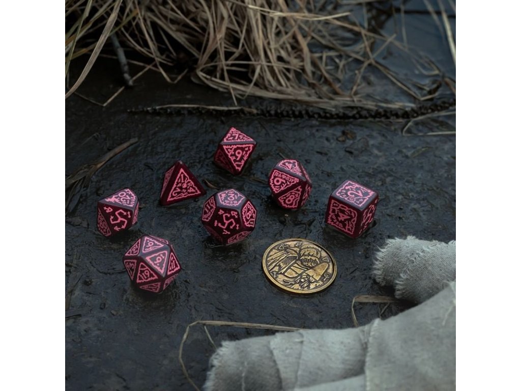 Sada obsahuje 7 mnohostěnných kostek s grafikou čarodějnic, jejichž šepot se line z bažin v oblíbené RPG videohře Zaklínač 3: Divoký hon (The Witcher 3: Wild Hunt). Kostky využijete pro hraní her na hrdiny, např. pro zaklínačské The Witcher RPG! Balení obsahuje 1x čtyř, 1x šesti, 1x osmi, 1x desíti, 1x dvanácti, 1x dvaceti stěnnou a 1x procentovou kostku. Součástí sady je také tématická sběratelská mince (⌀ 3 cm).