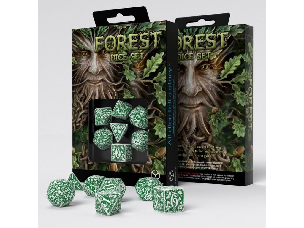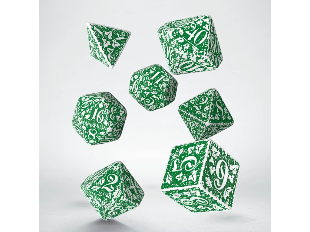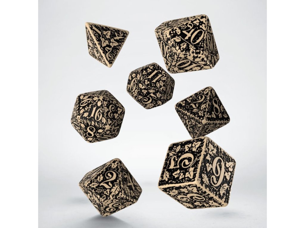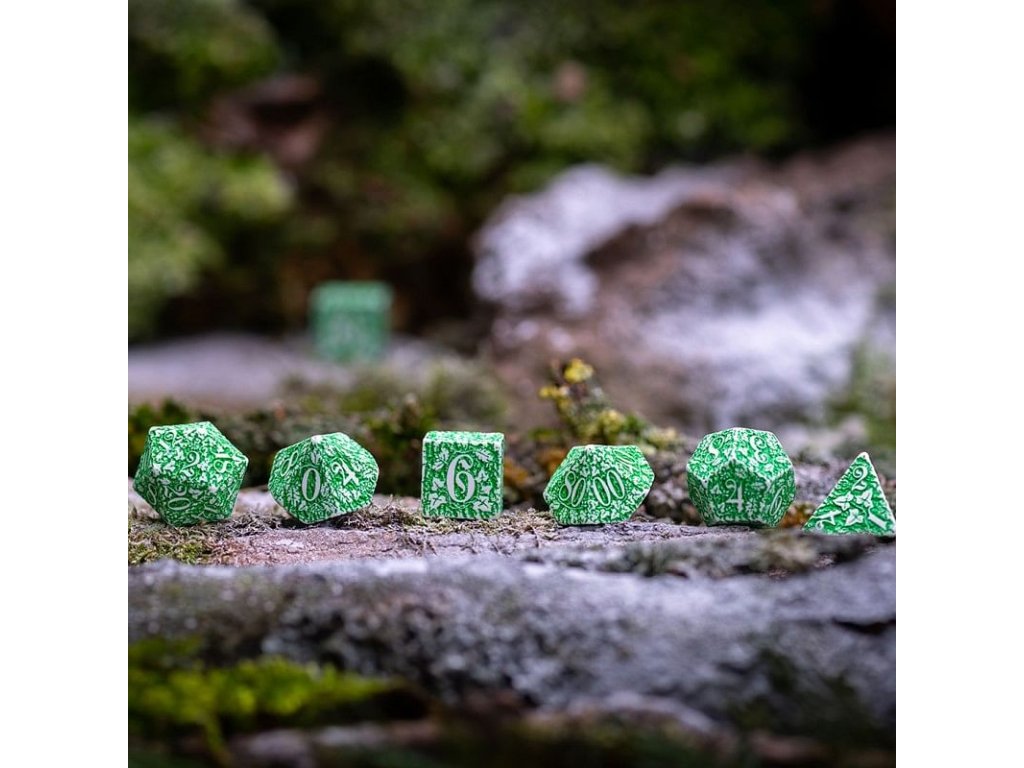 Sada nádherně zpracovaných kostek s přírodními motivy, skvělý doplněk pro hráče her na hrdiny. Sada obsahuje sedm kostek: čtyř, šesti, osmi, desíti, dvanácti, dvaceti stěnnou a procentovou kostku, dodáváme ji v dárkové krabičce.