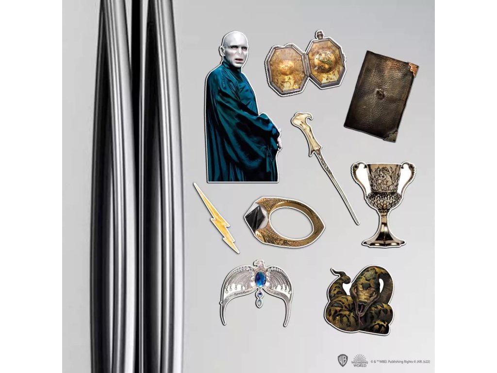 Sada obsahuje 9 pěnových magnetek s motivy lorda Voldemorta a viteálů. Pěkný doplněk domácnosti pro fanoušky Harry Poterra!