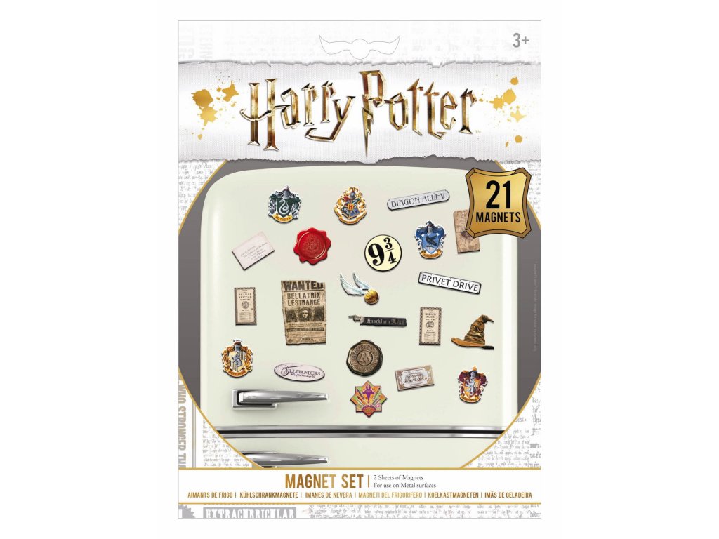 V této sadě naleznou fanoušci příběhů z magického světa Harry Pottera 21 ks pěkných magnetek v podobě známých symbolů, erbů a předmětů. Vyzdobte si lednici motivy ze svých oblíbených knih a filmů!