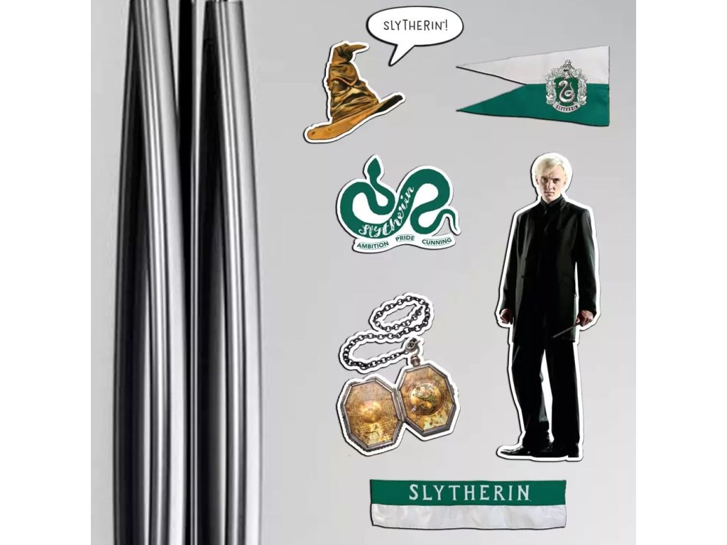 Sada obsahuje 7 pěnových magnetek pro bradavické studenty z koleje Zmijozel a fanoušky příběhů o Harry Potterovi. Můžete si tak třeba na lednici sestavit scény s Draco Malfoyem, Moudrým kloboukem a dalšími zmijozelskými symboly.
