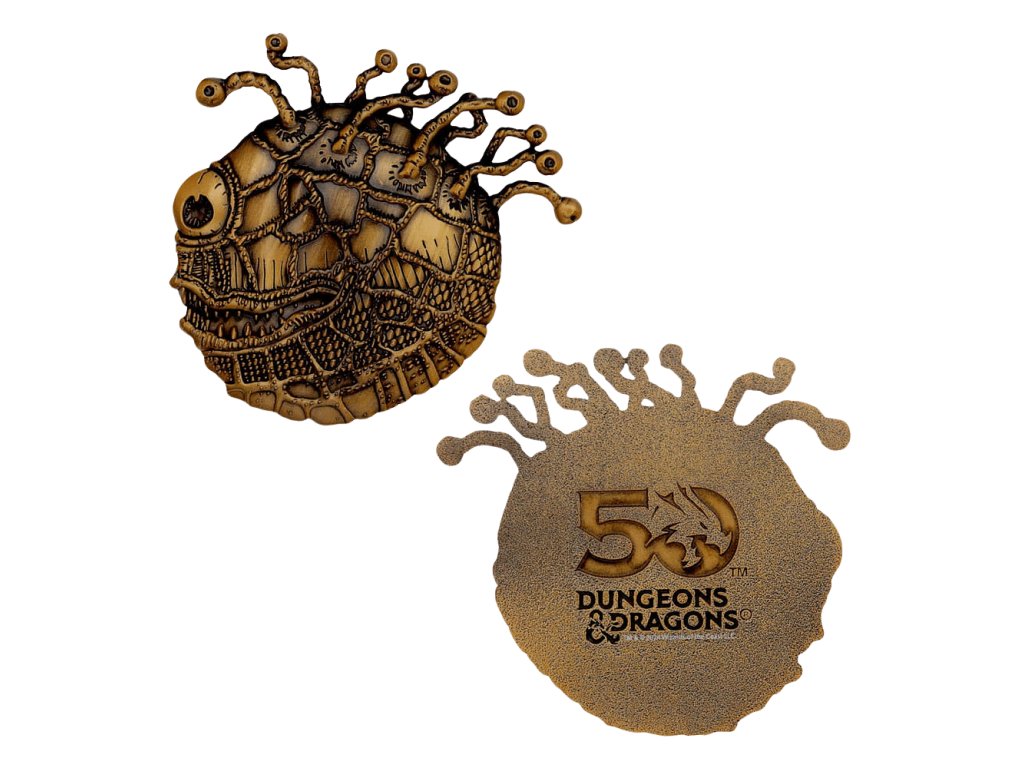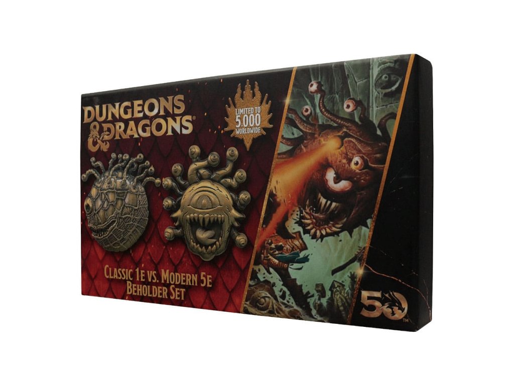 Beholder patří k nejmocnějším a nejinteligentnějším tvorům na světě Dungeons and Dragons a díky mnoha očím vidí do všech stran, takže je prakticky nemožné ho zaskočit!Tato dvojsada medailonů obsahuje klasický design beholdera z 1. edice a moderní design 5. edice. Oba medailony jsou vyvedeny ve starozlatém provedení a celosvětově limitovány počtem 5 000 kusů, přičemž krabička na vystavení je individuálně číslována.Tato sada beholderů je ideálním dárkem pro fanatiky a milovníky DnD, kteří se rádi nechají obdarovat nebo se sami potěší něčím výjimečným.