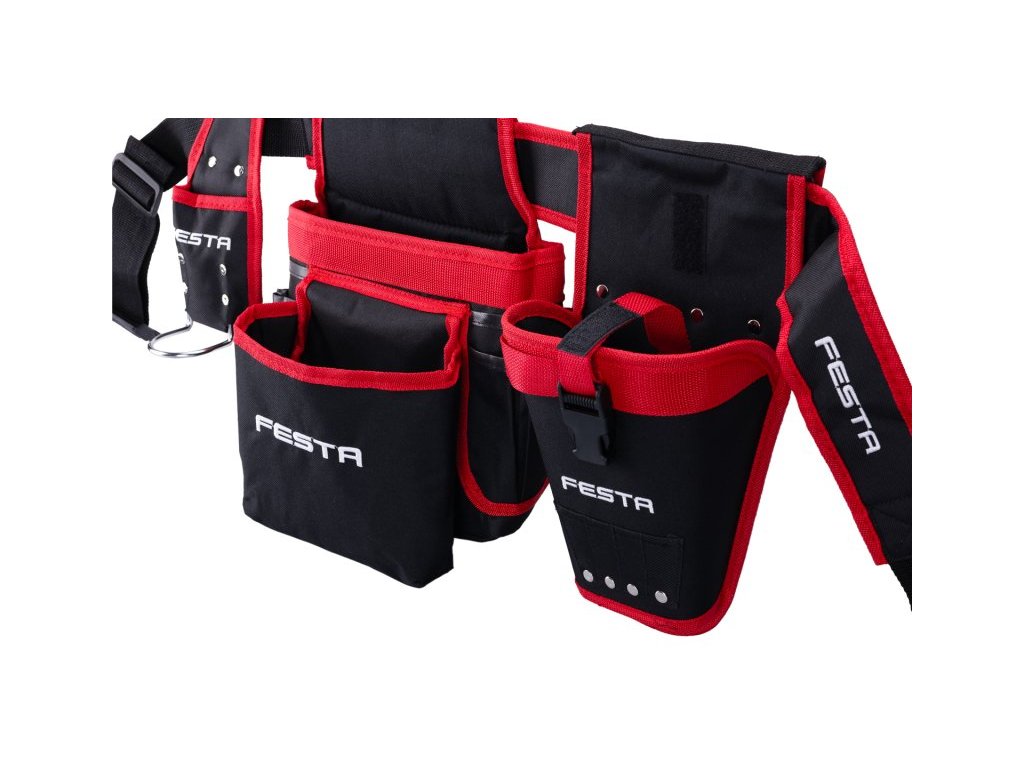 Montážní opasek - set, složení položek 37310, 37312, 37315 a 37321, praktický univerzální set pro řemeslníky, nastavitelný obvod opasku, použití : praktické a pohodlné uložení nářadí a komponentů ( spojovacího materiálu…).