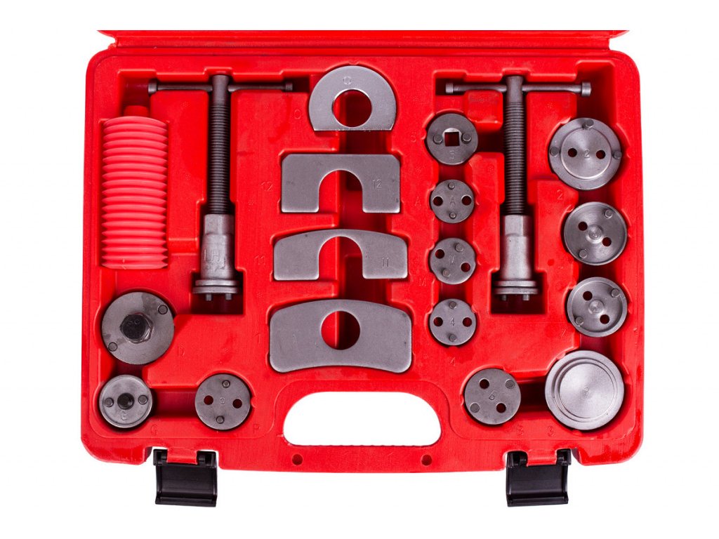 - Kompletní sada pro zatlačení pístků brzd při výměně brzdového obložení. Levý a pravý závit a celkový počet 35 dílů v sadě zaručí, že je sada použitelná prakticky na každý vůz.