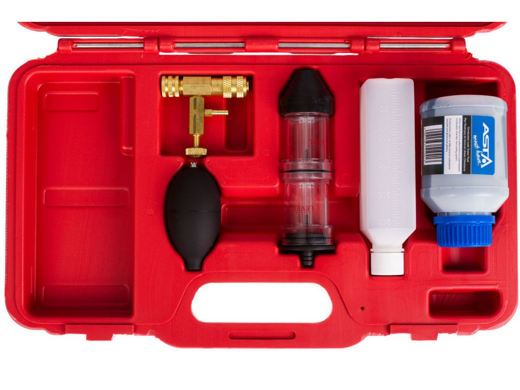Sada je určena pro zjištění defektů motoru jako prasklá hlava na principu změny barvy detekční tekutiny při styku se zplodinami hoření.