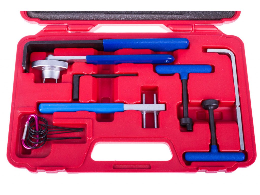 Komplexní sada napínáků a klíčů požadovaných k výměně rozvodových řemenů u většiny běžných benzínových a dieslových motorů.