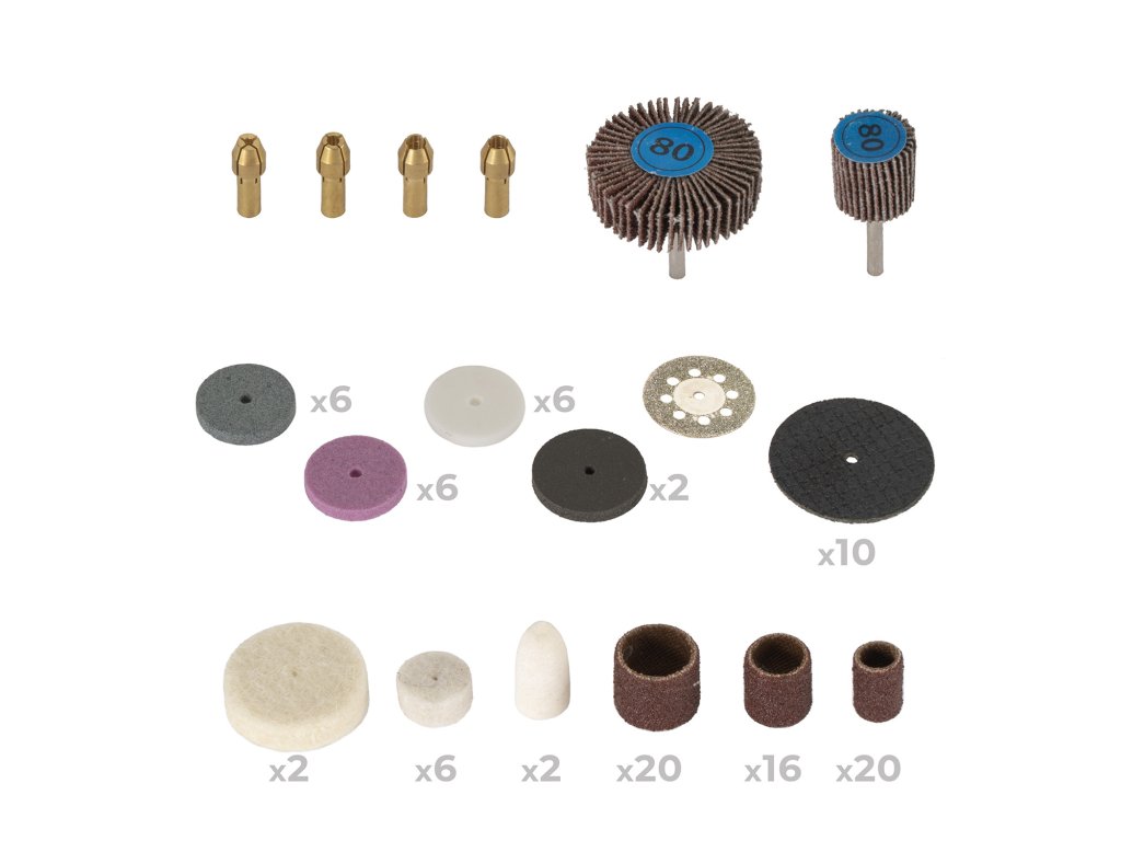 - 8× filcové brusné kotouče (felt wheels)