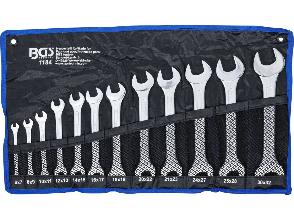 Sada oboustranných plochých klíčů | 6×7 – 30×32 mm | 12dílná v pouzdře | BGS
