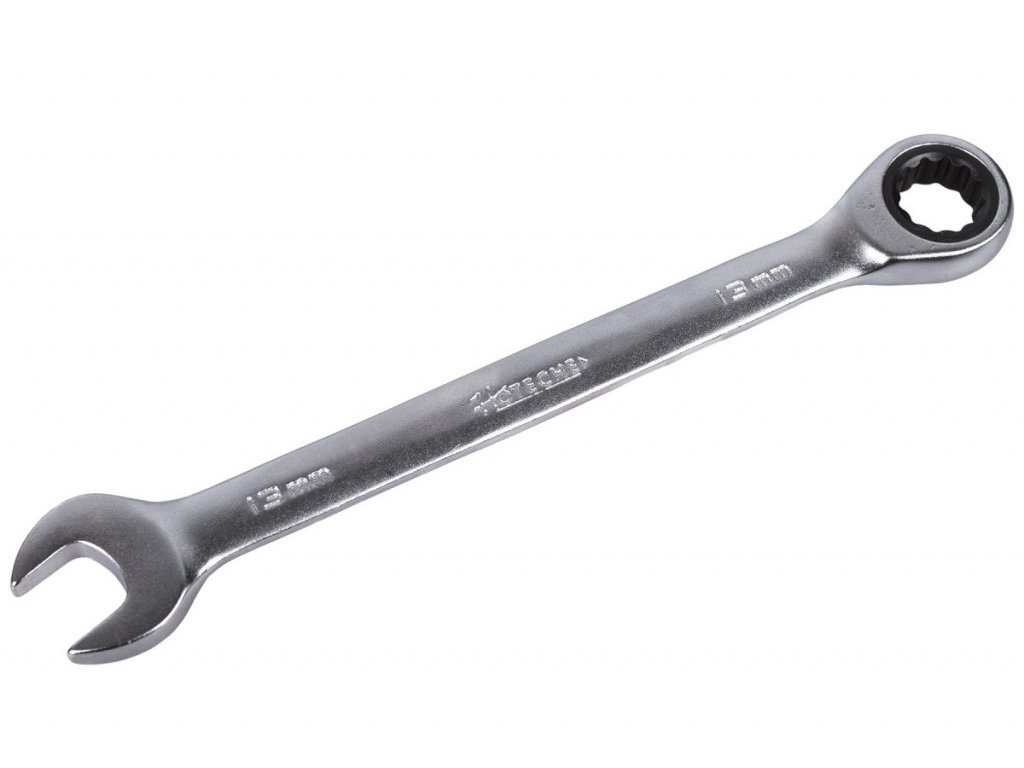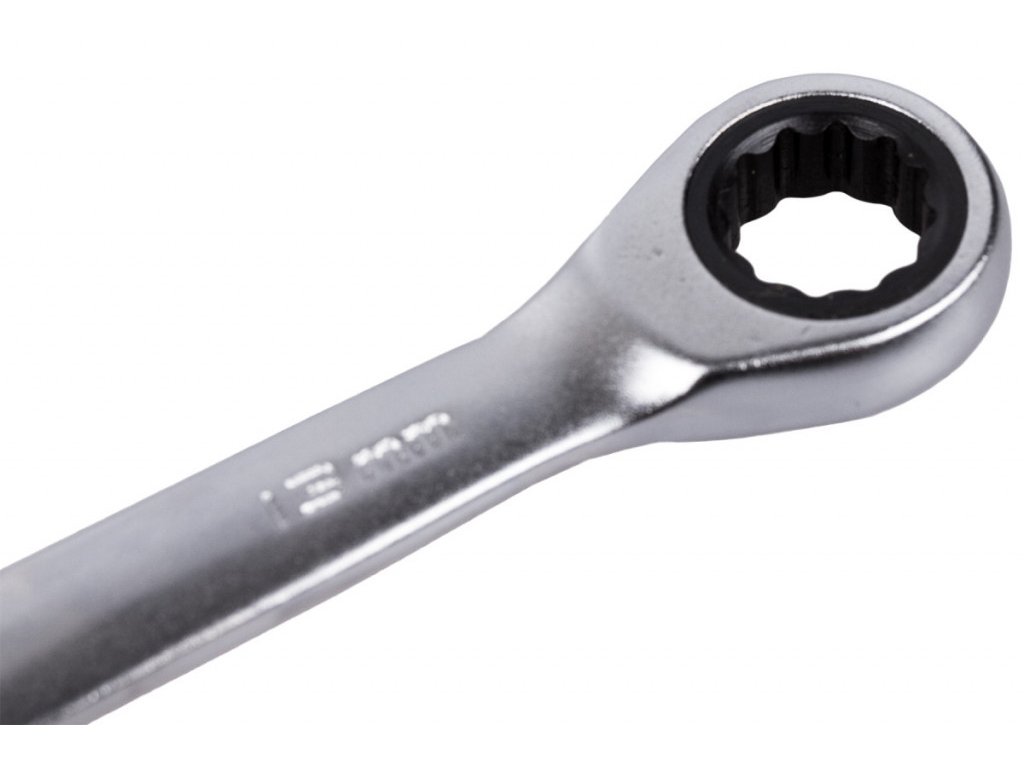 Z jedné strany se jedná o klasický stranový klíč a z druhé strany můžete využívat očkový klíč s dvanáctihranným profilem vybavený ráčnou.