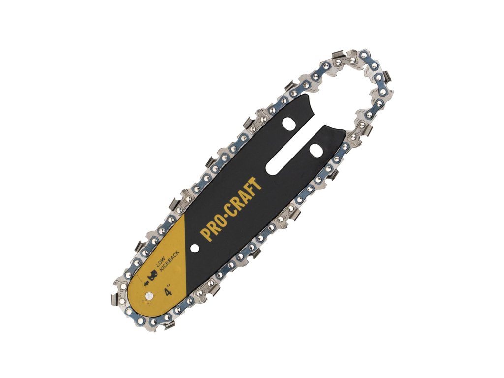 Sada pilových řetězů a lišty Procraft S4 pro řezání dřeva a větví. Obsahuje lištu 4 palce, 2 řetězy, šířka drážky 1.1 mm, rozteč řetězu 1/4 palce. Kompatibilní s modely PKA16 a PKA24.