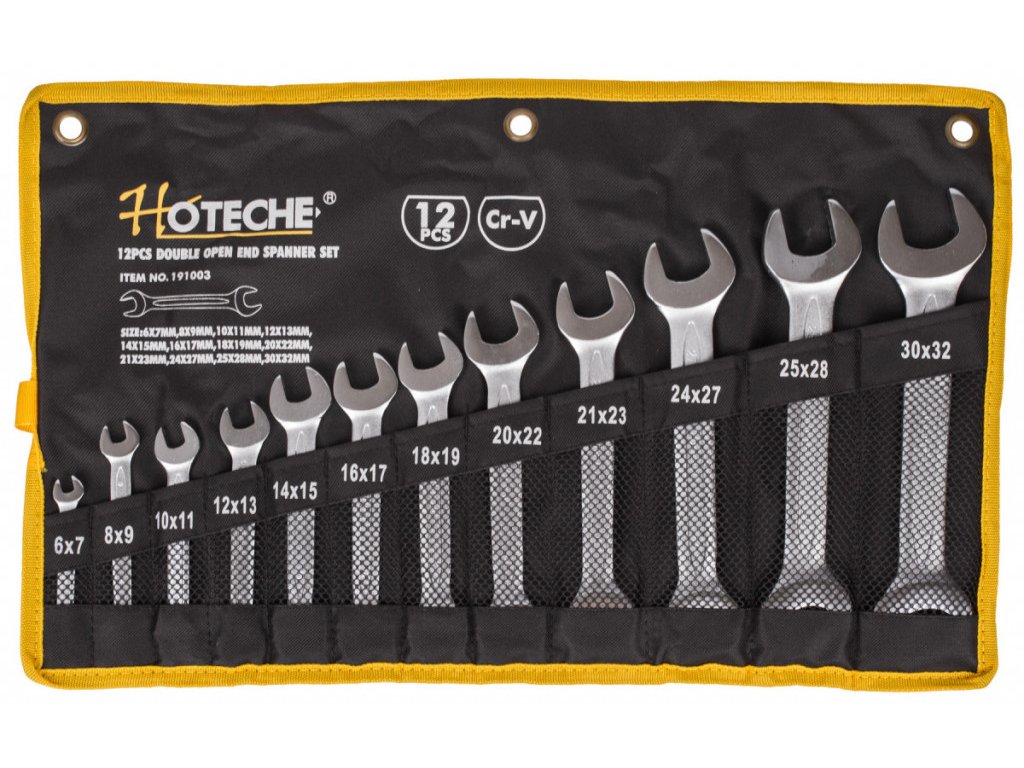Ploché klíče v 12 ks sadě, která je přehledně uložena ve srolovatelném pouzdře. Díky srolování je pak sada úspornější na skladovací prostor a hodí se jak na cesty, tak na montáže. Klíče jsou vyrobeny z kvalitní chrom-vanadiové oceli.