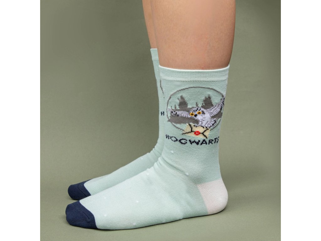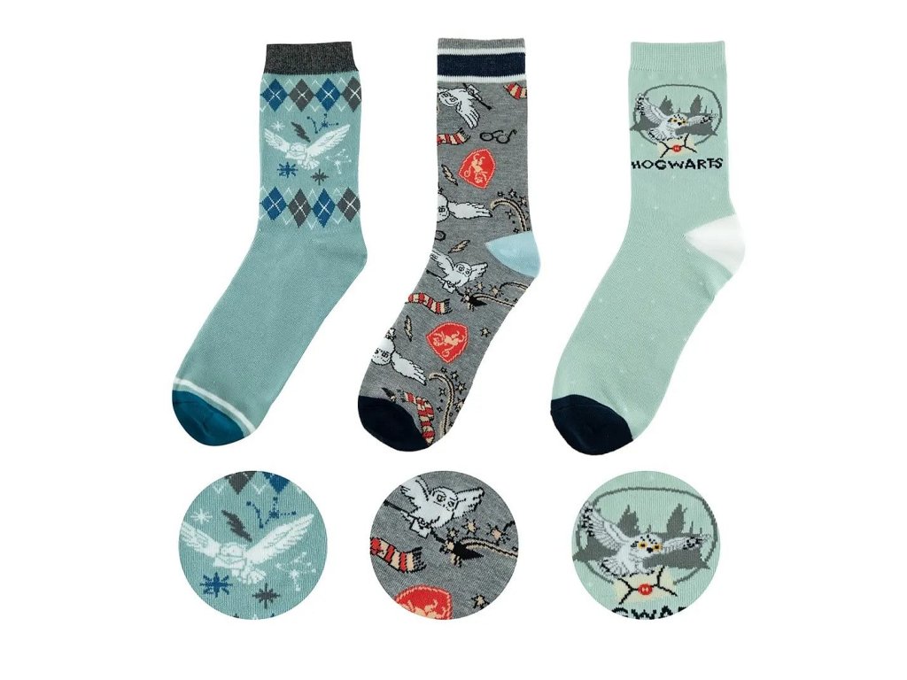 Sada obsahuje 3 páry ponožek se sovou Hedvikou, která přilétla rovnou z kouzelného světa Harryho Pottera, aby tě provázela na každém kroku. Každý pár zdobí jiný motiv, např. jak Hedvika přináší dopis z Bradavic nebo sedí na létajícím koštěti. Ponožky jsou vhodné pro velikost nohou 35 až 45.