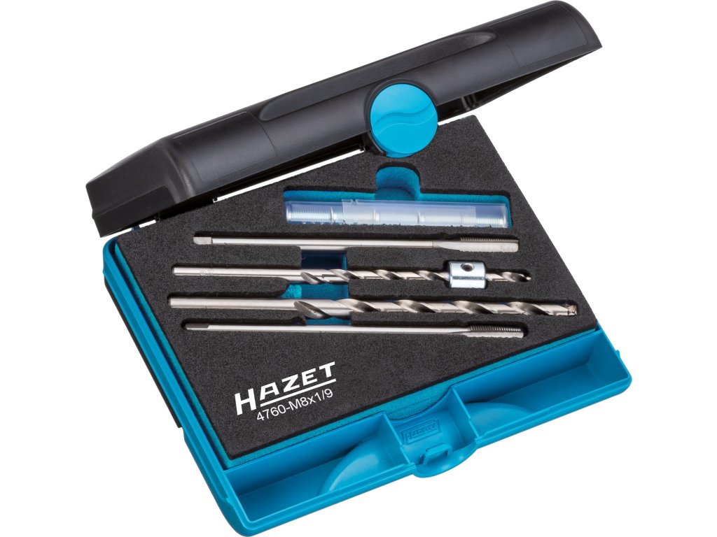 Kvalitní sada pro opravu žhavících svíček bez nutnosti demontáže hlavy válců od německého výrobce HAZET, pro opravy závitů M8x1.