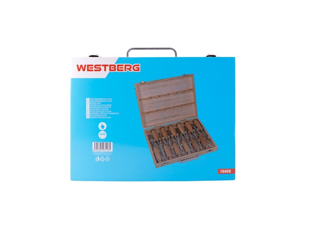 Dláta řezbářská 12 ks v sadě. Dláta prodávaná v dřevěnném kufříku. Různé