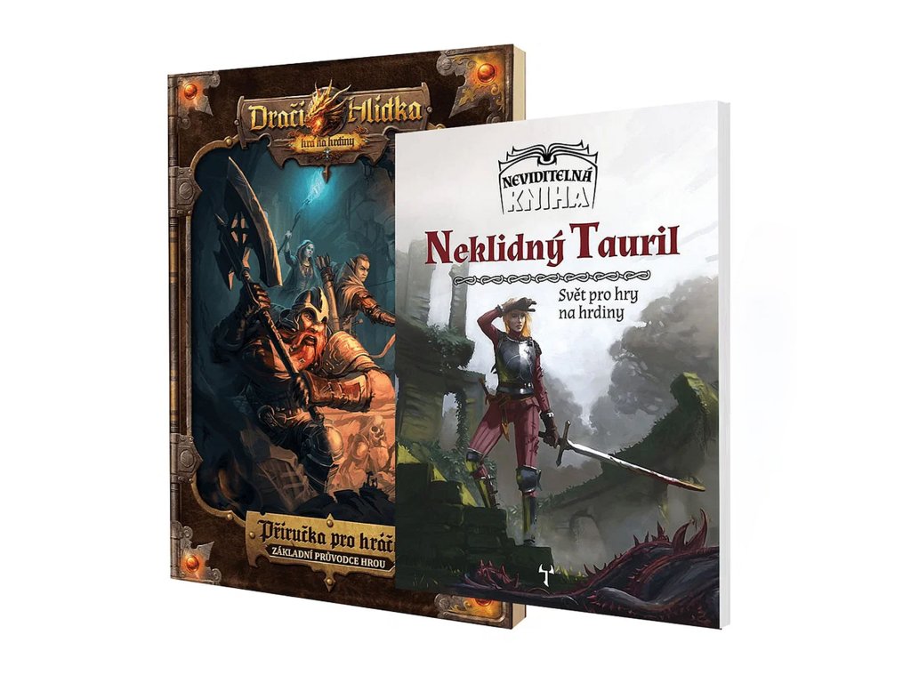 Pravidla RPG + svět v jedné sadě. Sada obsahuje české epické stolní RPG Dračí hlídka v1.1 (hráči + vypravěč + kostky) a k němu reálie pro hraní - fantasy svět Neviditelná kniha: Neklidný Tauril. V Dračí hlídce, fantasy hře na hrdiny, můžete prožít mnoho epických dobrodružství. Pravidla vychází z původního Dračího doupěte (verze 1.6), přinášejí však některé inovace a úpravy inspirované populárními RPG, kupříkladu Dungeons and Dragons nebo Pathfinder. Dračí hlídka obsahuje 2 příručky (pro hráče a pro vypravěče), 2 kostky a vytištěné osobní deníky (1 nevyplněný + 12 hotových postav). Neviditelná kniha je pomůckou pro hraní fantasy her na hrdiny (RPG). Obsahuje desítky zápletek, postav, míst a kousků inspirace, z nichž mnohé hrají na vážnější notu a vyvolávají otázky k zamyšlení. Jejich společným zasazením je fiktivní světadíl Tauril, který se po pádu mocné Církve Nebeského ducha ocitá v chaosu bouřlivých změn, nicméně jednotlivé nápady můžete snadno převzít do jiných světů. K Neviditelné knize si můžete stáhnout mapy: Agolzar (4,5 MB) Jižní Tauril (7,3 MB) Kalus (6,9 MB) Terlington (7,2 MB) Thuren (6,7 MB)
