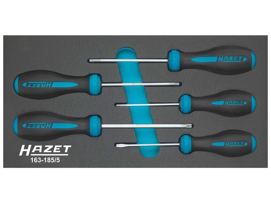 Sada kvalitních německých TORX šroubováků HAZET HEXAnamic v pěnové vložce, ideální do zásubek pojízdných vozíků, 5 kusů.