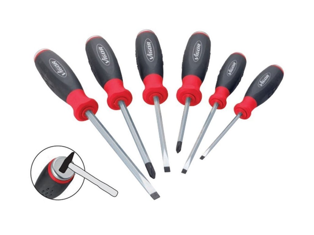 Profesionální sada šroubováků s úderovou hlavou od německé značky VIGOR, 6 kusů, 4 ploché a 2 křížové.