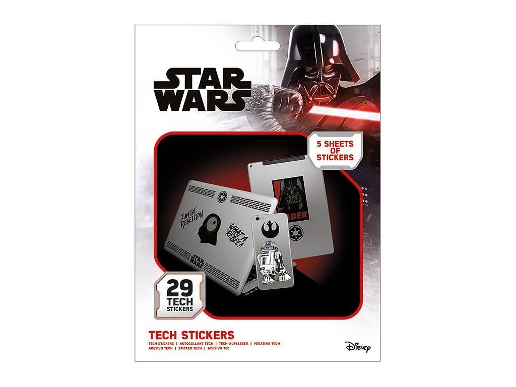 S těmito celkem 29 ks vinylových samolepek na motivy Hvězdných válek, populární sci-fi ságy Star Wars, si můžete vyzdobit váš laptop, mobil či notebook.