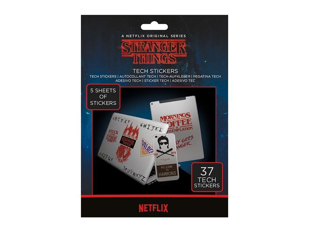 V této sadě naleznete 5 archů s celkem 37 ks vinylových samolepek s motivy z hororového seriálu Stranger Things. Samolepky jsou vhodné např. na tablet, laptop či mobil.