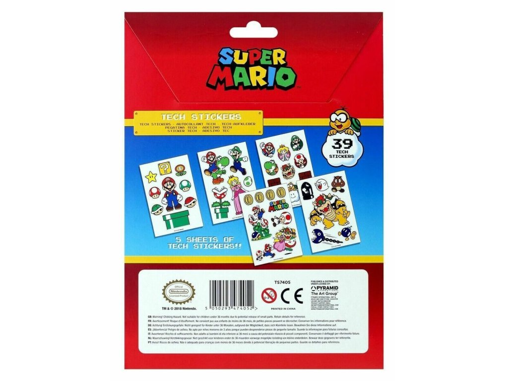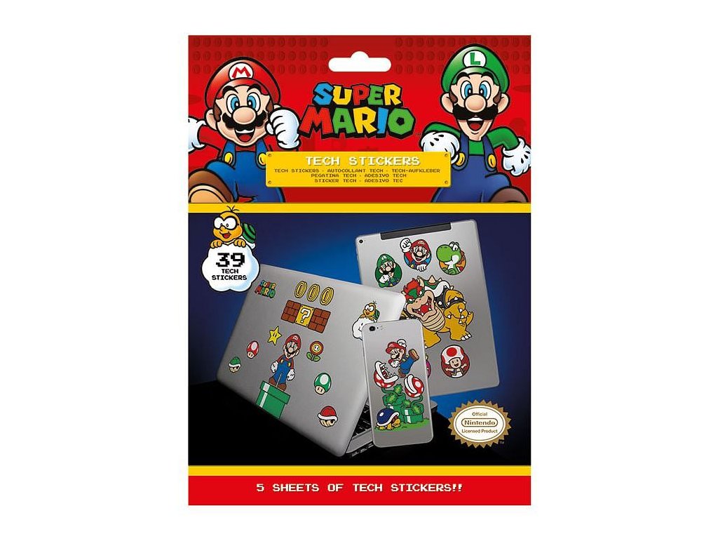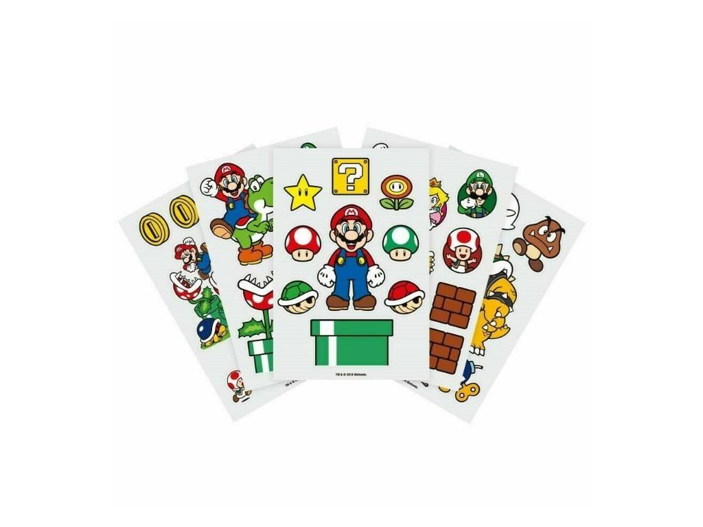Sada obsahuje 5 archů s celkem 39 ks samolepek s motivy z oblíbených videoher od Nintenda o italském instalatérovi Super Mariovi, Luigim, dráčkovi Yoshim a dalších hopsacích postavičkách. Samolepkami si můžete vyzdobit například mobil či notebook.