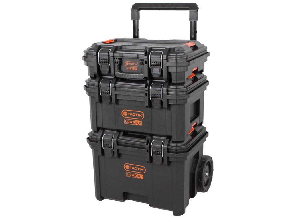 Tento úložný systém nabízí 3 stohovatelné kufry, každý s unikátními vlastnostmi a velkým úložným prostorem.