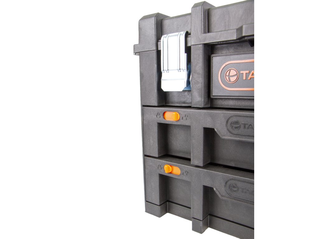 Sada kufrů disponuje tzv. HD modulárním systémem, díky němuž lze libovolně propojit i další kufry od značky Tactix.