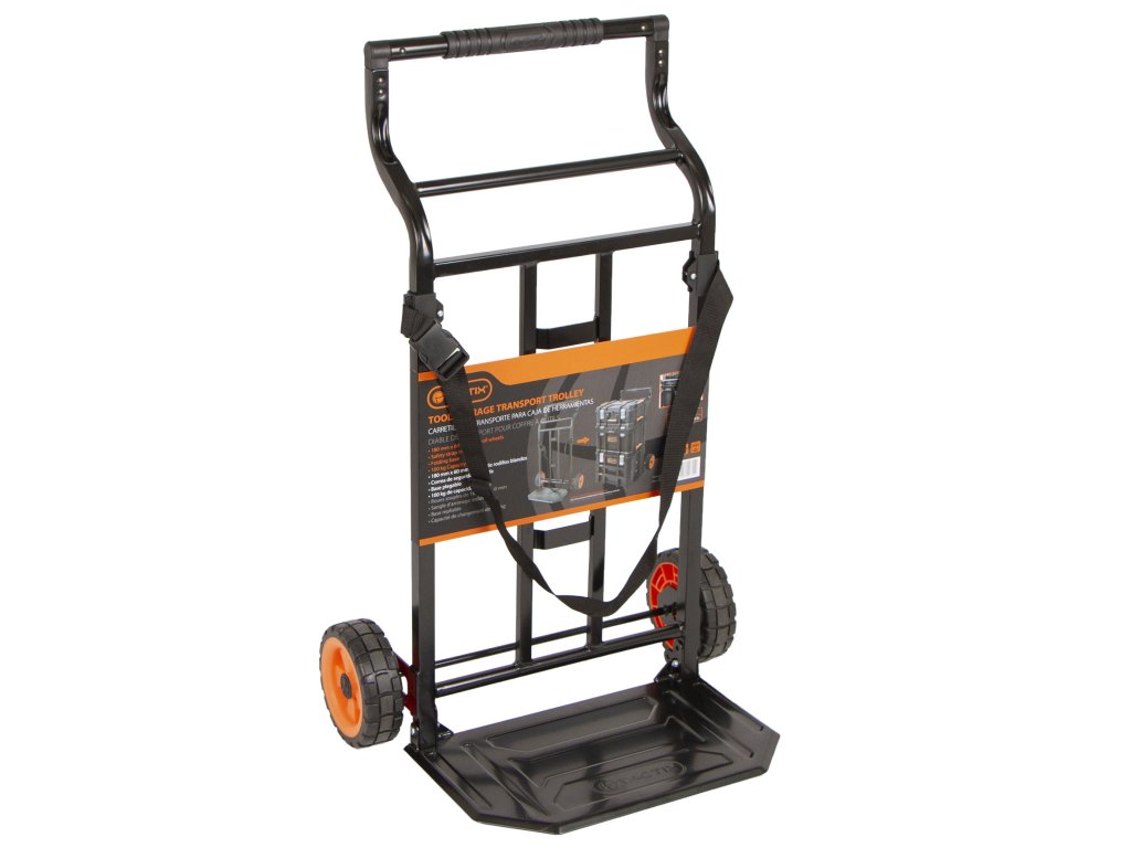 Skládací rudlík je vybaven pojistným popruhem pro zamezení převrácení kufrů s nářadím. Díky rudlíku je přemisťování sady kufrů snadné a pohodlné.