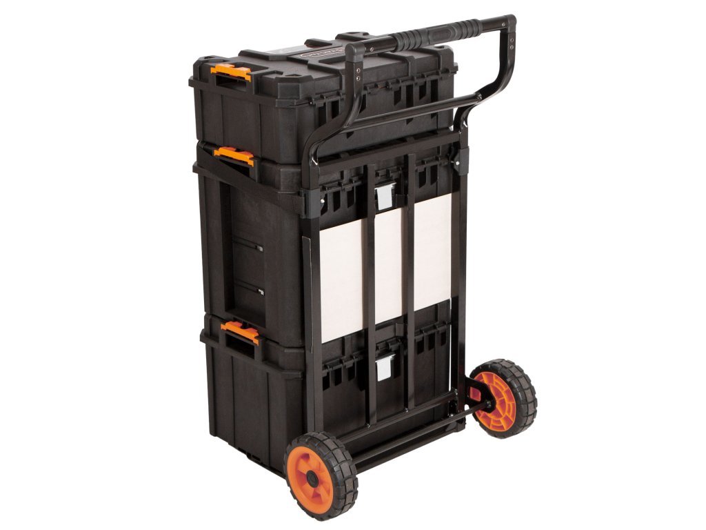 Hlavní výhodou kufrů od značky Tactix je jejich variabilita úložných prostorů, vodotěsnost a snadná manipulace celé sady díky madlu a kolečkům.