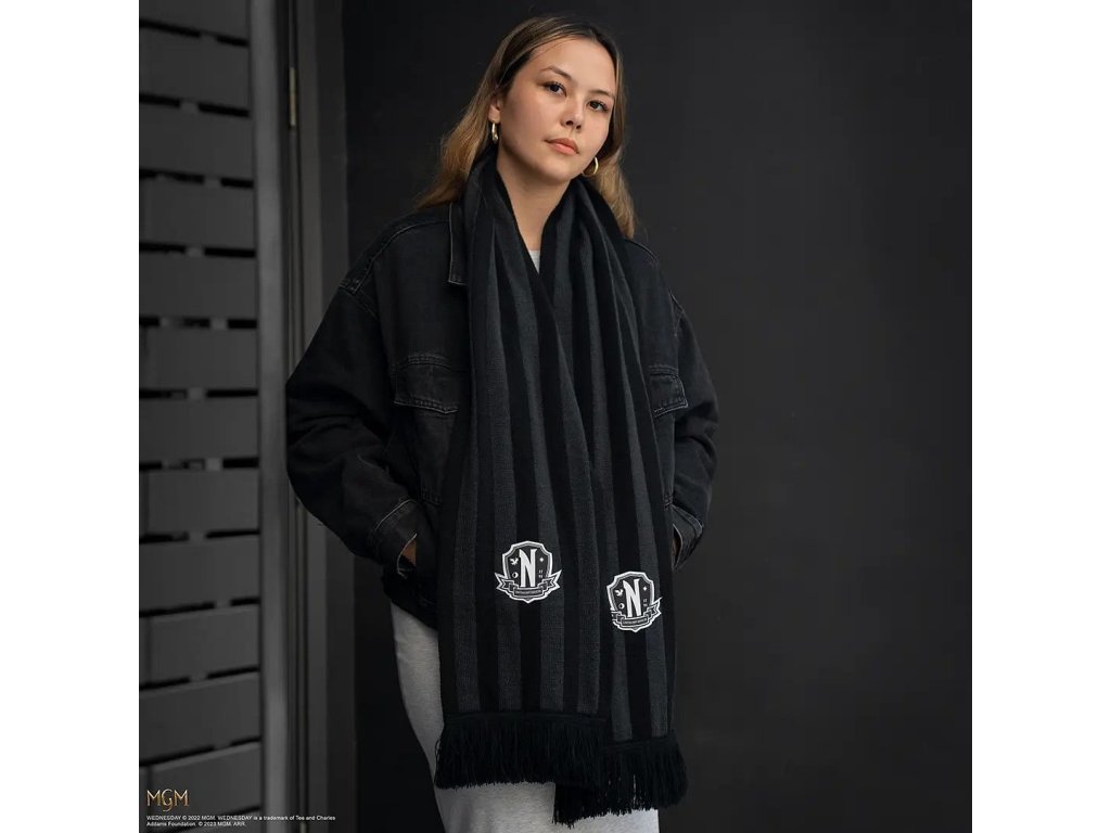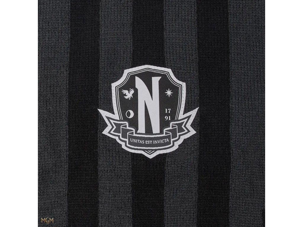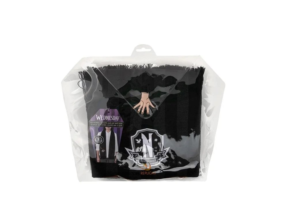 Elegantní černá šála se znakem Nevermore Academy, kterou navštěvuje Wednesday ze stejnojmenného seriálu. Originální doplněk vašeho oblečení i kostýmu! Baleno ve stylové průhledné tašce, kterou lze použít jako psaníčko.