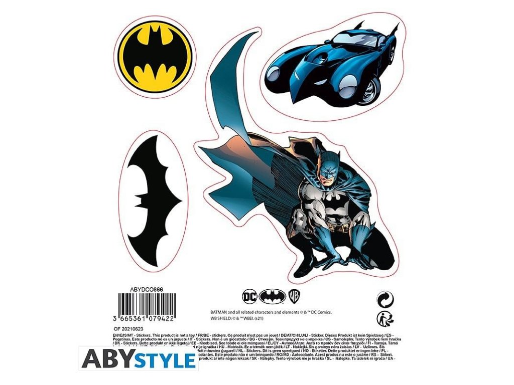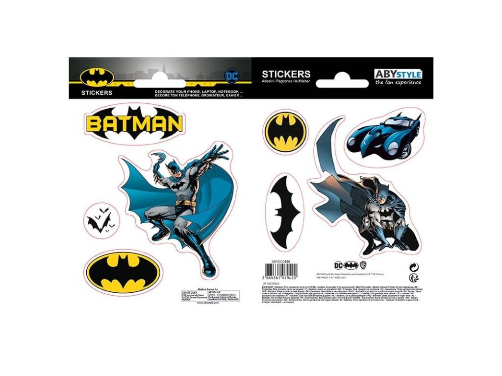 Sada obsahuje 2 aršíky samolepek s Batmanem a ikonickými symboly z komiksů od DC Comics. Pomocí samolepek si můžete vyzdobit třeba váš laptop nebo smartphone.
