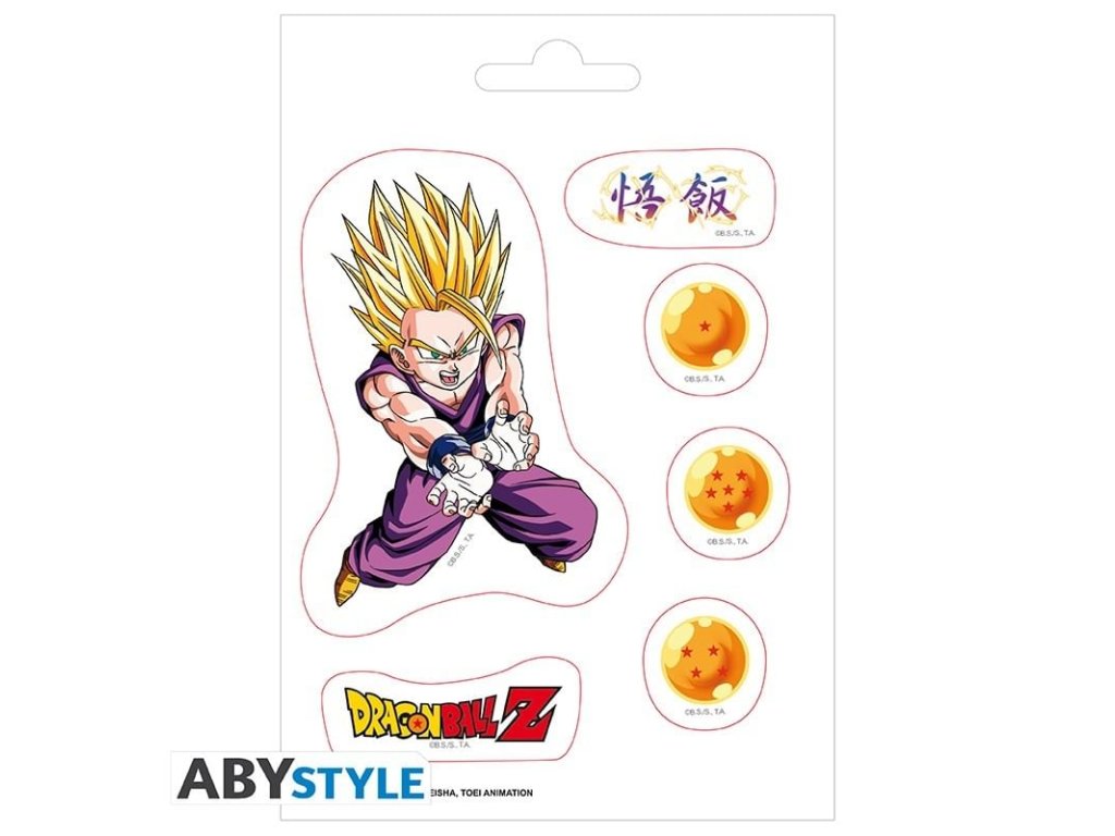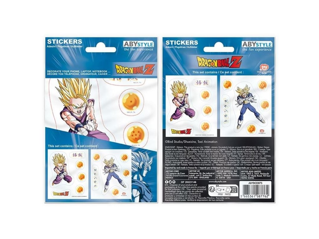 Sada obsahuje 2 aršíky samolepek s postavami a motivy z oblíbené japonské mangy Dragon Ball Z. Samolepkami si můžete vyzdobit váš laptop nebo smartphone.