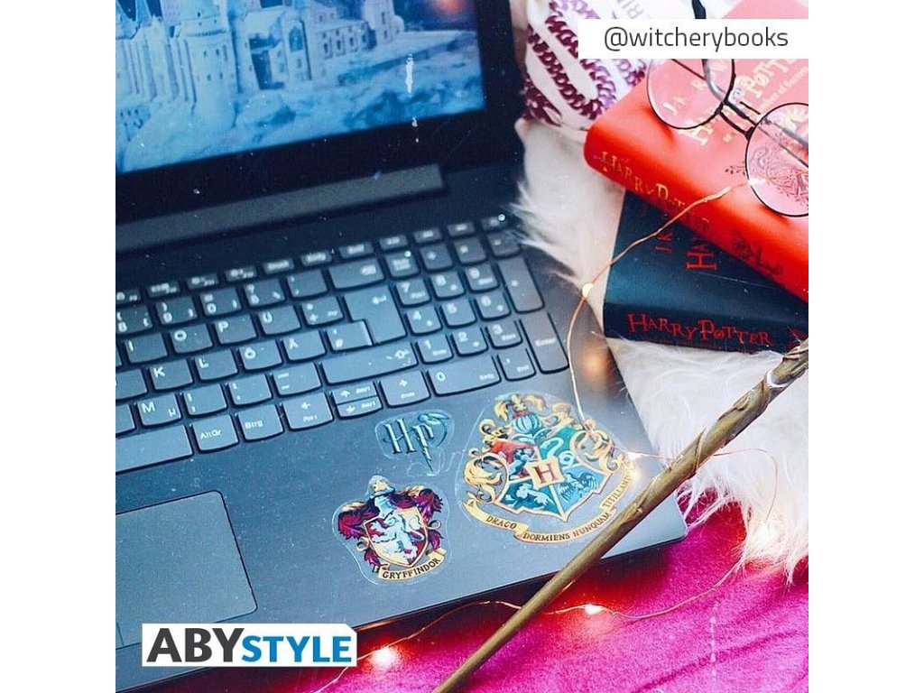 Sada obsahuje 2 aršíky samolepek s erbem školy čar a kouzel v Bradavicích a znaky kolejí Nebelvír, Mrzimor, Zmijozel a Havraspár z Harry Pottera. Vhodné pro např. pro váš laptop nebo smartphone.