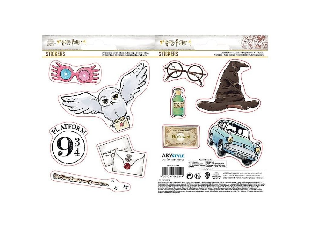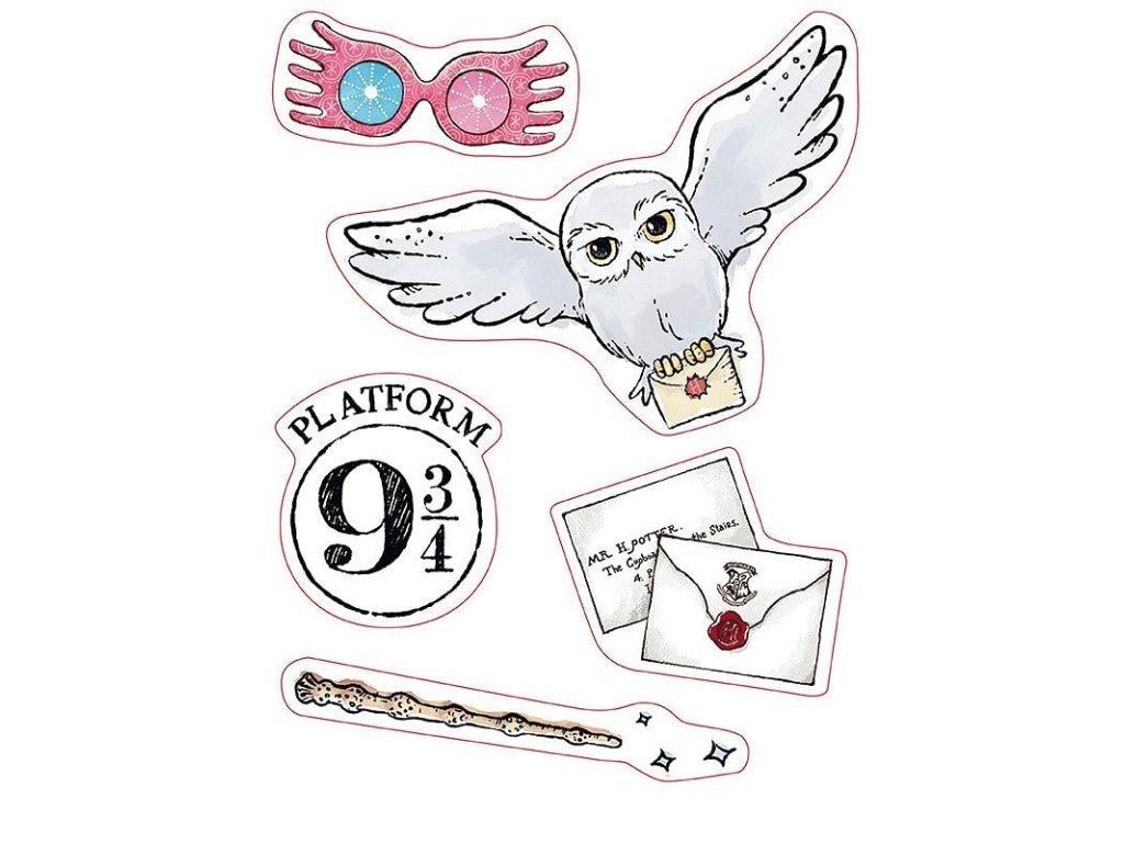 Sada obsahuje 2 aršíky samolepek s motivy z Harry Pottera, jako jsou např. Moudrý klobouk, sova Hedvika, symbol Nástupiště 9 a 3/4, brýle Lenky Láskorádové a další. Vhodné pro vyzdobení např. vašeho laptopu nebo smartphonu.