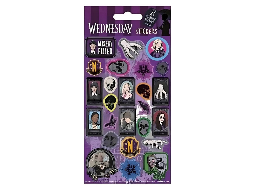 Samolepky Wednesday (25 ks) přináší dávku temného šarmu pro všechny milovníky gotiky a černého humoru. Najdeš zde ikonické motivy z populárního seriálu, od výrazů hlavní hrdinky až po Nevermore Academy. Samolepky se hodí na notebook, mobil, diář nebo školní sešit – prostě všude tam, kde chceš dát najevo, že temnota ti sluší.