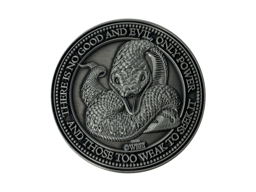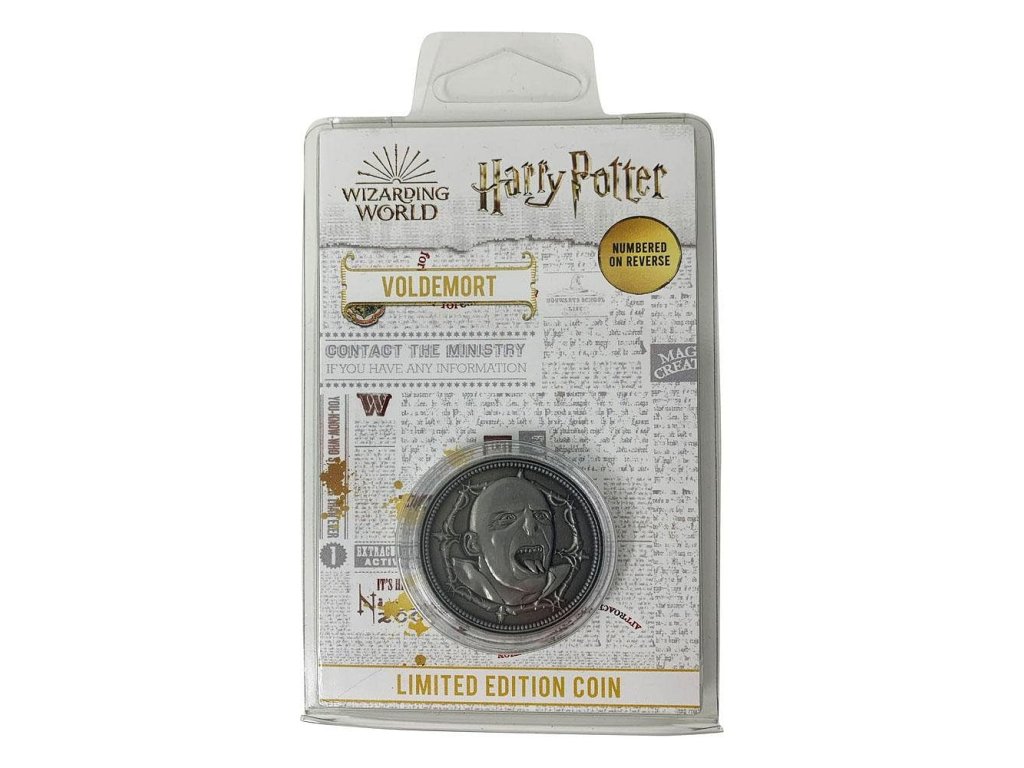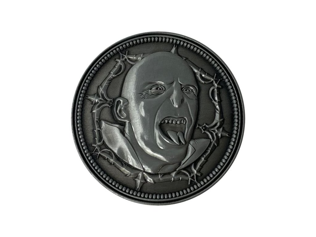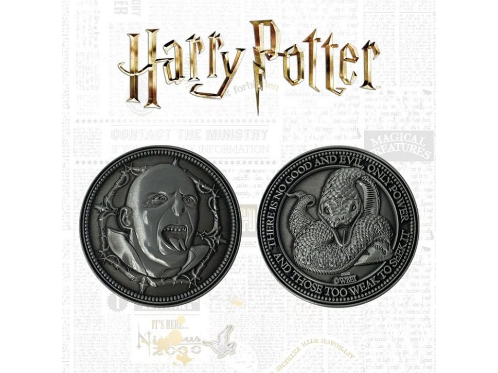 Děsivá tvář toho, jehož jméno se nesmí vyslovit, zdobí sběratelskou minci pro fanoušky Harry Pottera! Z opačné strany se nachází hadí symbol Zmijozelu. Jedná se o limitovanou edici 9 995 ks, každý jednotlivý kus je očíslovaný.