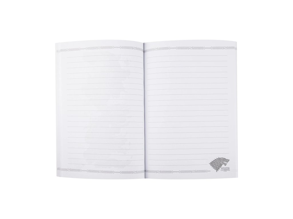 Sešit v měkkých deskách zdobí stříbrný rodový znak Starků z Game of Thrones - Hry o trůny. Linkovaný zápisník na vaše poznámky a nápady!