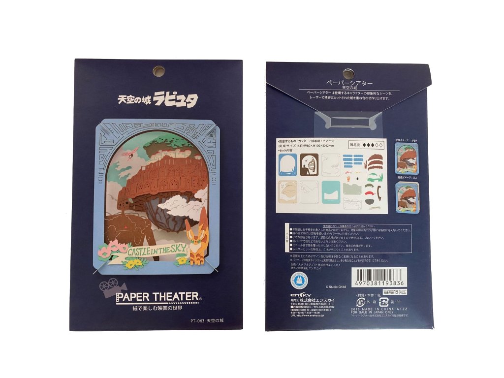 Papírová skládanka pro fanoušky anime filmu Castle in the Sky (Laputa: Zámek v oblacích) od japonského Studia Ghibli potěší věrné fanoušky! Obtížnost skládanky je střední (3 z 5), jednotlivé části vyžadují slepení lepidlem. Skládačka Paper Theater vám umožní vytvořit nádhernou scénu s vašimi oblíbenými hrdiny z filmů, seriálů i anime. Tato neobvyklá záliba vyžaduje určitou dávku trpělivosti a pečlivosti – odměnou vám však bude relaxační zábava a samozřejmě výsledek v podobě nádherného obrazu nebo výjevu. Paper Theater může být z papíru, ale také ze dřeva a pro jeho sestavení se vám tak může hodit několik pomůcek: lepidlo pro pevné spojení jednotlivých dílů, pinzeta pro snadnou manipulaci a skalpel pro dokonalé vyříznutí jednotlivých částí.
